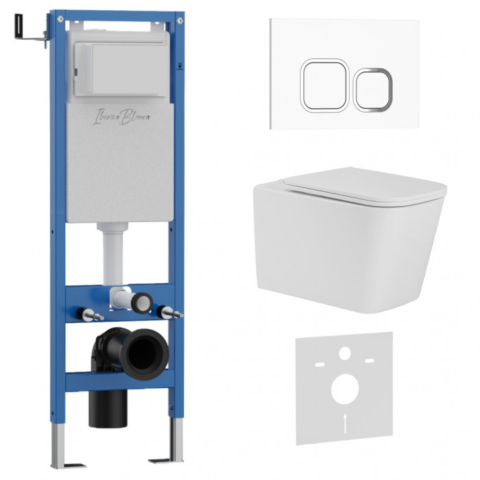 Комплект 3в1 IBERICA BLANCA инсталляция SILENCIO MINI, унитаз TOLEDO ALTO белый, кнопка смыва ESTI-Q белый глянцевый (IB.001M.TLA.234.831)