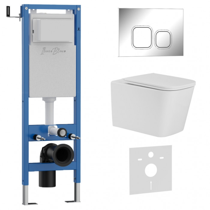 Комплект 3в1 IBERICA BLANCA инсталляция SILENCIO MINI, унитаз TOLEDO ALTO белый, кнопка смыва ESTI-Q хром глянцевый (IB.001M.TLA.234.833) IBERICA BLANCA IB.001M.TLA.234.833 20 лет Испания