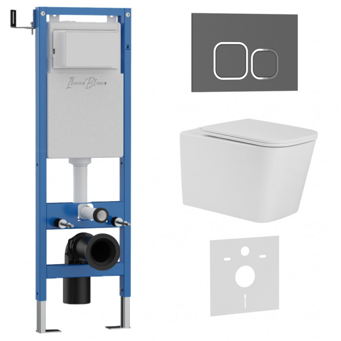 Комплект 3в1 IBERICA BLANCA инсталляция SILENCIO MINI, унитаз TOLEDO ALTO белый, кнопка смыва ESTI-Q серый матовый (IB.001M.TLA.234.837)