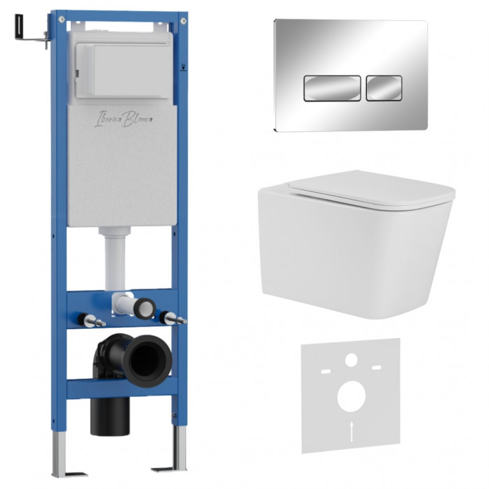 Комплект 3в1 IBERICA BLANCA инсталляция SILENCIO MINI, унитаз TOLEDO ALTO белый, кнопка смыва ESTI-R хром глянцевый (IB.001M.TLA.234.213)