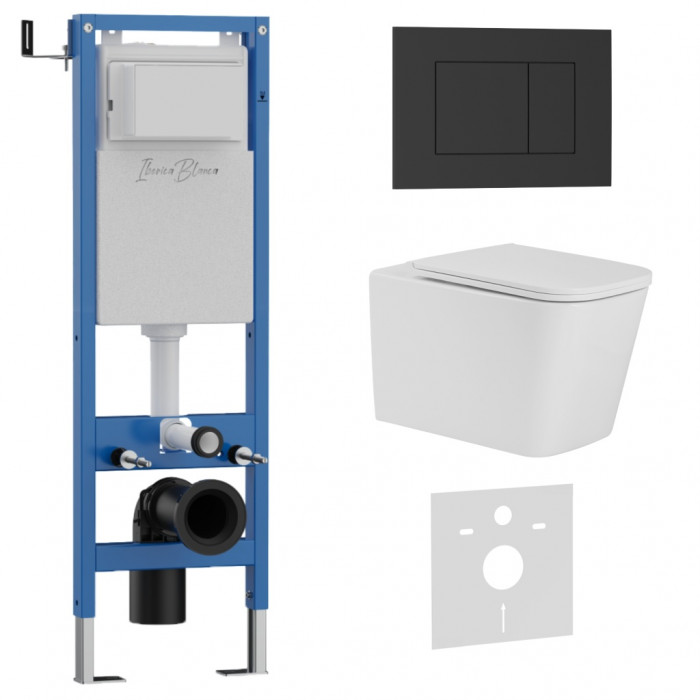 Комплект 3в1 IBERICA BLANCA инсталляция SILENCIO MINI, унитаз TOLEDO ALTO белый, кнопка смыва ESTI-S черный матовый (IB.001M.TLA.234.851)