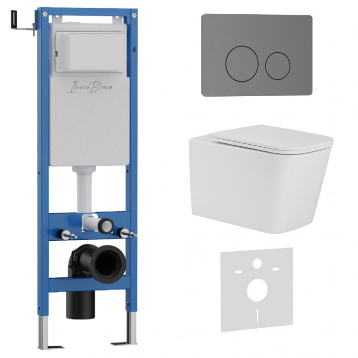 Комплект 3в1 IBERICA BLANCA инсталляция SILENCIO MINI, унитаз TOLEDO ALTO белый, кнопка смыва INOX-О вороненая сталь (IB.001M.TLA.234.8180)