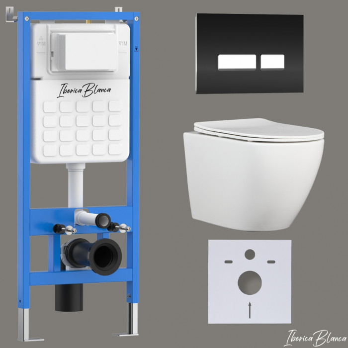 Комплект 3в1 IBERICA BLANCA инсталляция SILENCIO, унитаз BILBAO ALTO белый, кнопка смыва CRYSTAL-R черный (IB001.BLA.234.2211)