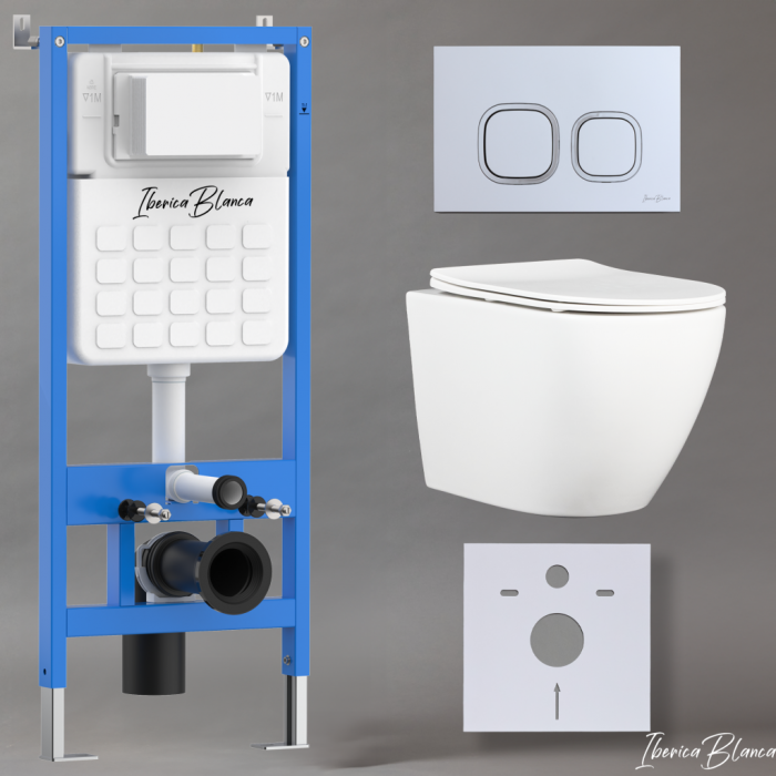 Комплект 3в1 IBERICA BLANCA инсталляция SILENCIO, унитаз BILBAO ALTO белый, кнопка смыва ESTI-Q хром матовый (IB001.BLA.234.834) IBERICA BLANCA IB001.BLA.234.834 20 лет Испания