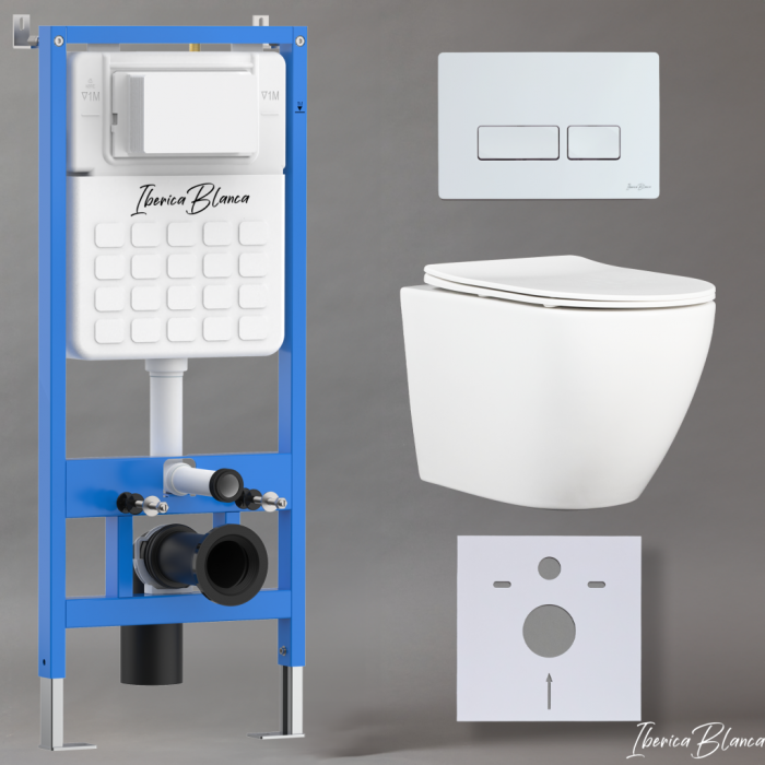 Комплект 3в1 IBERICA BLANCA инсталляция SILENCIO, унитаз BILBAO ALTO белый, кнопка смыва ESTI-R белый глянцевый (IB001.BLA.234.211) IBERICA BLANCA IB001.BLA.234.211 20 лет Испания