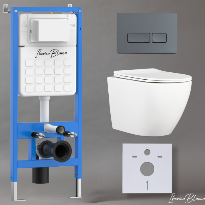 Комплект 3в1 IBERICA BLANCA инсталляция SILENCIO, унитаз BILBAO ALTO белый, кнопка смыва ESTI-R серый матовый (IB001.BLA.234.218)