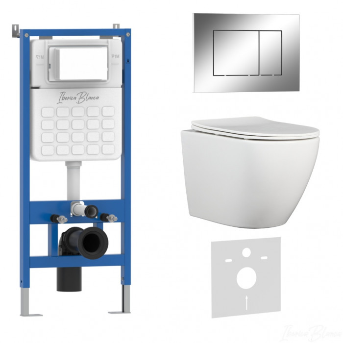 Комплект 3в1 IBERICA BLANCA инсталляция SILENCIO, унитаз BILBAO ALTO белый, кнопка смыва ESTI-S хром глянцевый (IB001.BLA.234.852)