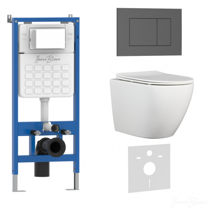 Комплект 3в1 IBERICA BLANCA инсталляция SILENCIO, унитаз BILBAO ALTO белый, кнопка смыва ESTI-S серый матовый (IB001.BLA.234.856)