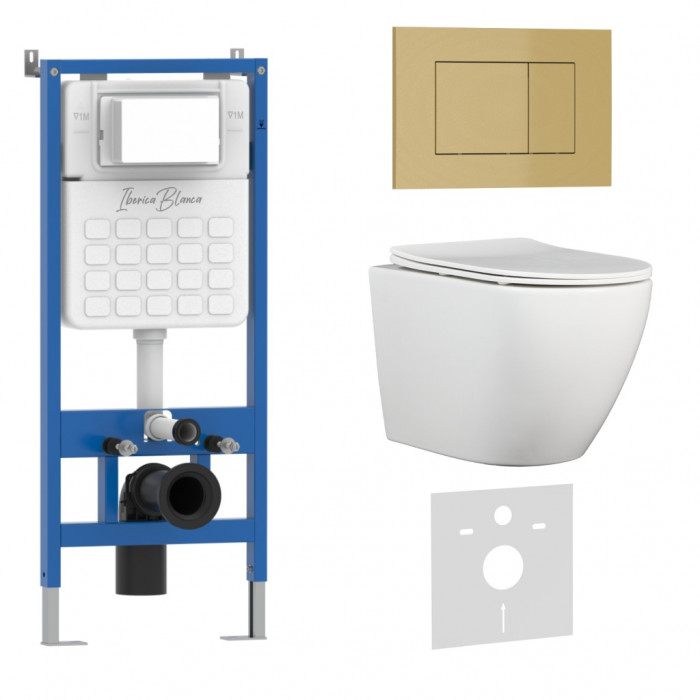 Комплект 3в1 IBERICA BLANCA инсталляция SILENCIO, унитаз BILBAO ALTO белый, кнопка смыва ESTI-S золото матовое (IB001.BLA.234.854)