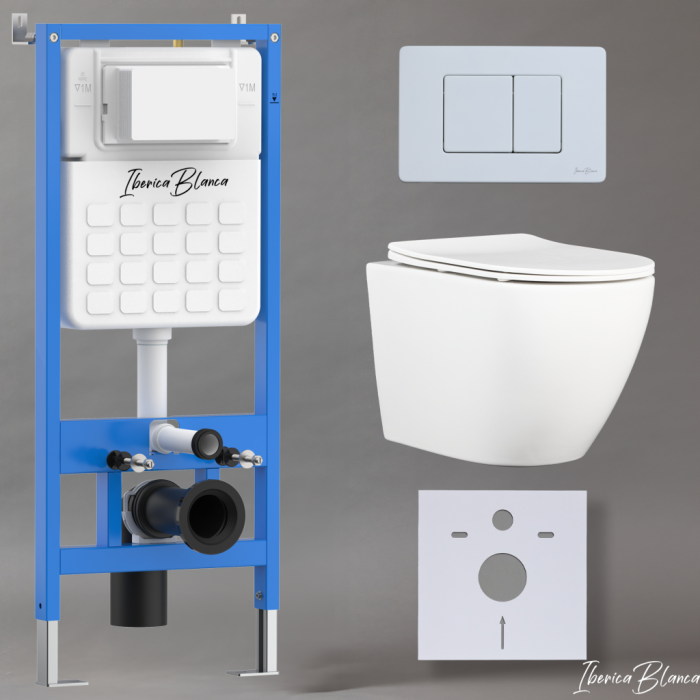 Комплект 3в1 IBERICA BLANCA инсталляция SILENCIO, унитаз BILBAO ALTO белый, кнопка смыва INOX-C белый матовый (IB001.BLA.234.111) IBERICA BLANCA IB001.BLA.234.111 20 лет Испания