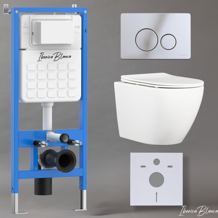 Комплект 3в1 IBERICA BLANCA инсталляция SILENCIO, унитаз BILBAO ALTO белый, кнопка смыва INOX-O хром глянцевый (IB001.BLA.234.8131) IBERICA BLANCA IB001.BLA.234.8131 20 лет Испания