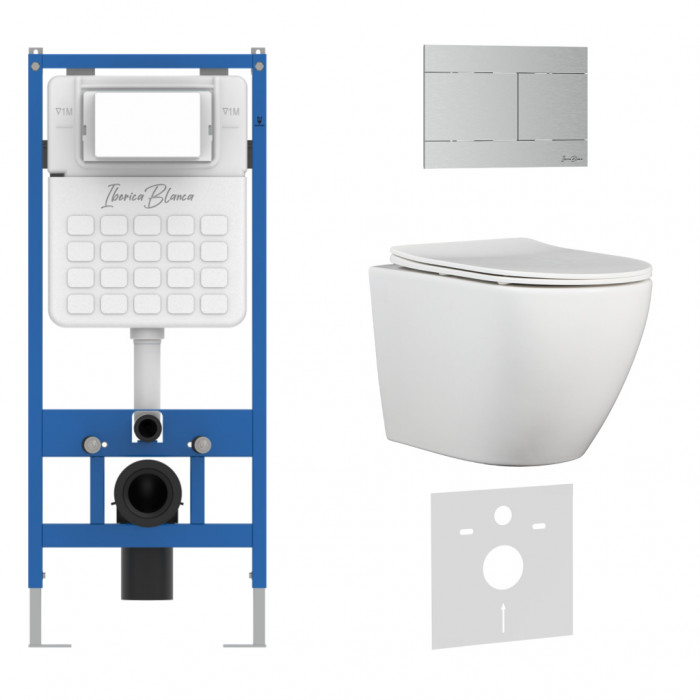 Комплект 3в1 IBERICA BLANCA инсталляция SILENCIO, унитаз BILBAO ALTO белый, кнопка смыва INOX-R хром матовый (IB001.BLA.234.1501)