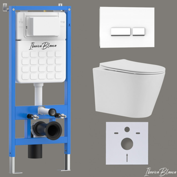 Комплект 3в1 IBERICA BLANCA инсталляция SILENCIO, унитаз BURGOS ALTO белый, кнопка смыва CRYSTAL-R белый глянцевый (IB001.BRA.234.2210)