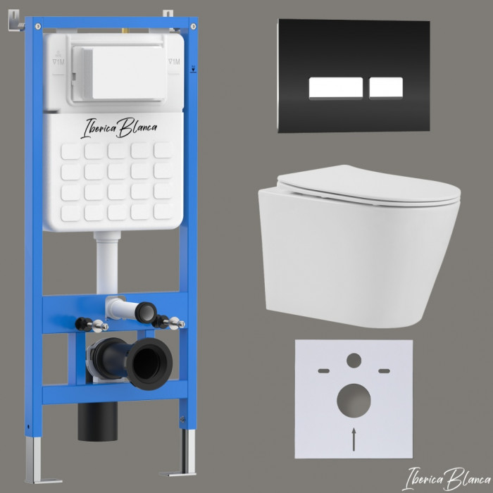 Комплект 3в1 IBERICA BLANCA инсталляция SILENCIO, унитаз BURGOS ALTO белый, кнопка смыва CRYSTAL-R черный глянцевый (IB001.BRA.234.2211)