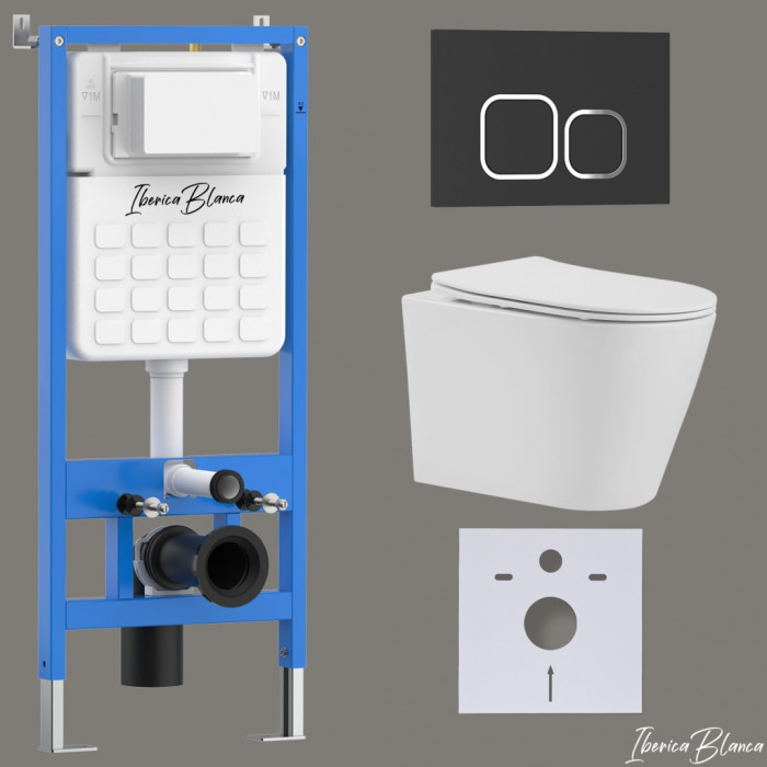 Комплект 3в1 IBERICA BLANCA инсталляция SILENCIO, унитаз BURGOS ALTO белый, кнопка смыва ESTI-Q черный матовый (IB001.BRA.234.832)