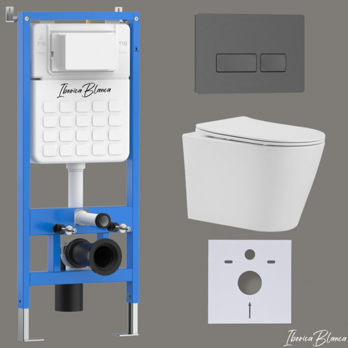 Комплект 3в1 IBERICA BLANCA инсталляция SILENCIO, унитаз BURGOS ALTO белый, кнопка смыва ESTI-R серый матовый (IB001.BRA.234.218)