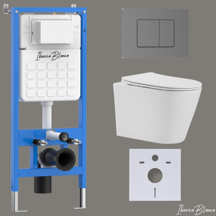 Комплект 3в1 IBERICA BLANCA инсталляция SILENCIO, унитаз BURGOS ALTO белый, кнопка смыва INOX-C вороненая сталь (IB001.BRA.234.1180)