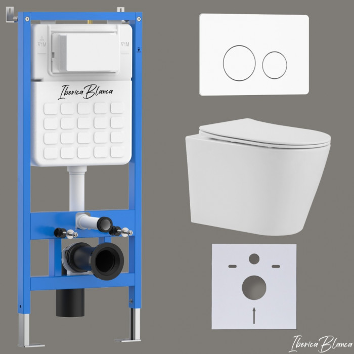 Комплект 3в1 IBERICA BLANCA инсталляция SILENCIO, унитаз BURGOS ALTO белый, кнопка смыва INOX-O белый матовый (IB001.BRA.234.811)