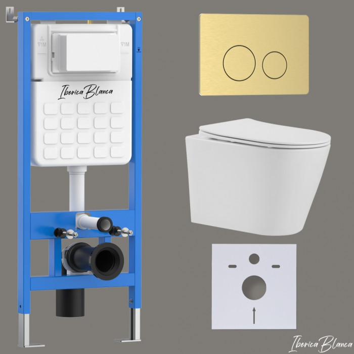 Комплект 3в1 IBERICA BLANCA инсталляция SILENCIO, унитаз BURGOS ALTO белый, кнопка смыва INOX-O золото матовое (IB001.BRA.234.815)