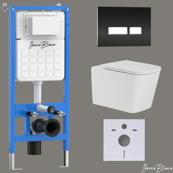 Комплект 3в1 IBERICA BLANCA инсталляция SILENCIO, унитаз TOLEDO ALTO белый, кнопка смыва CRYSTAL-R черный глянцевый (IB001.TLA.234.2211)