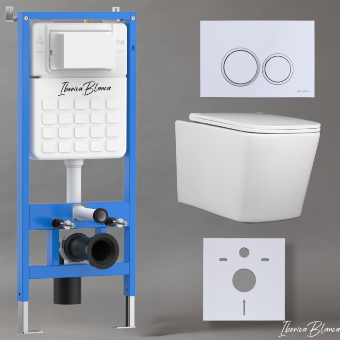 Комплект 3в1 IBERICA BLANCA инсталляция SILENCIO, унитаз TOLEDO ALTO белый, кнопка смыва ESTI-O белый глянцевый (IB001.TLA.234.821)