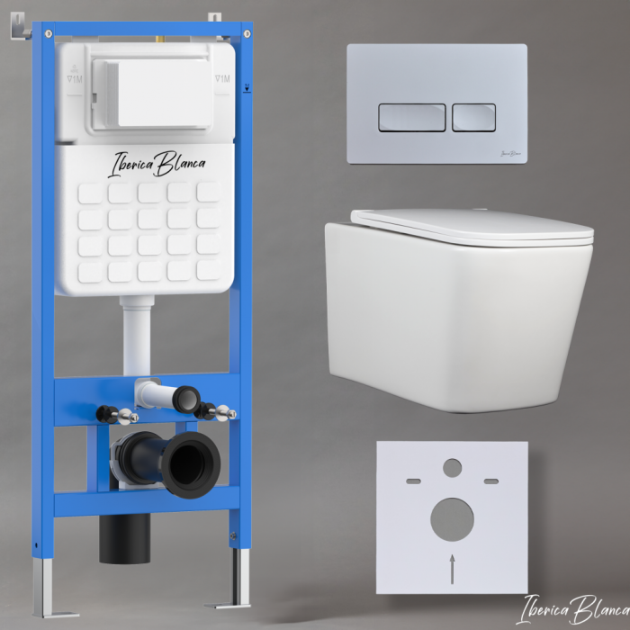 Комплект 3в1 IBERICA BLANCA инсталляция SILENCIO, унитаз TOLEDO ALTO белый, кнопка смыва ESTI-R хром матовый (IB001.TLA.234.214)