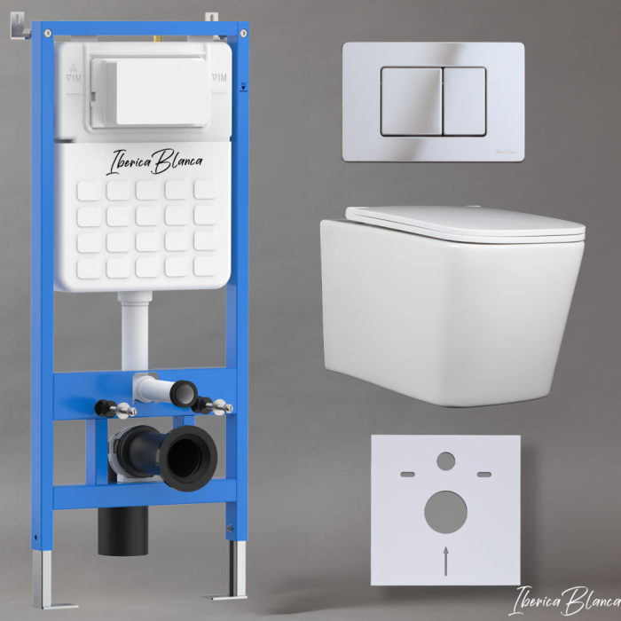 Комплект 3в1 IBERICA BLANCA инсталляция SILENCIO, унитаз TOLEDO ALTO белый, кнопка смыва INOX-C хром глянцевый (IB001.TLA.234.1131) IBERICA BLANCA IB001.TLA.234.1131 20 лет Испания
