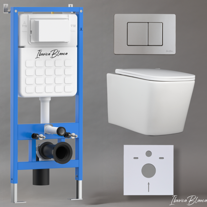 Комплект 3в1 IBERICA BLANCA инсталляция SILENCIO, унитаз TOLEDO ALTO белый, кнопка смыва INOX-C хром матовый (IB001.TLA.234.1132) IBERICA BLANCA IB001.TLA.234.1132 20 лет Испания