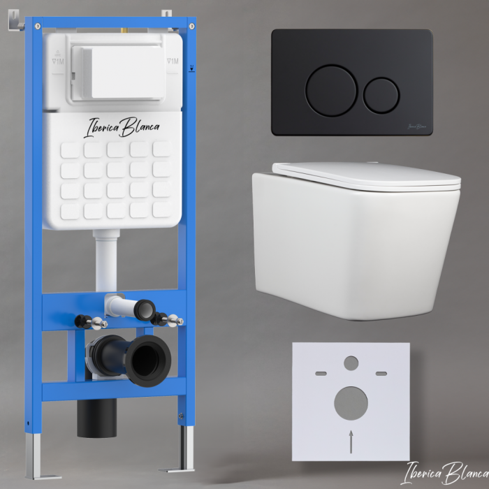Комплект 3в1 IBERICA BLANCA инсталляция SILENCIO, унитаз TOLEDO ALTO белый, кнопка смыва INOX-O черный матовый (IB001.TLA.234.812)