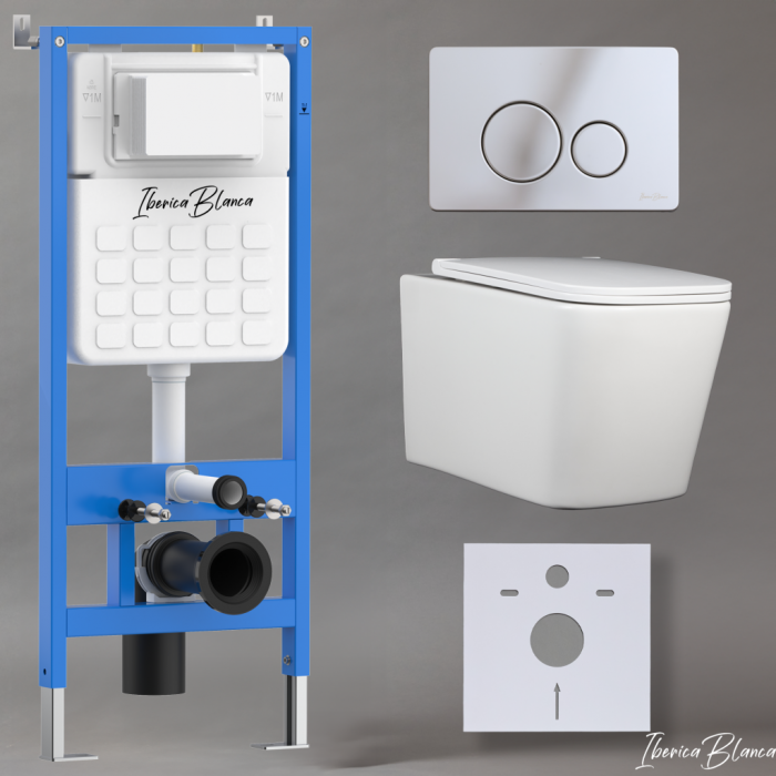 Комплект 3в1 IBERICA BLANCA инсталляция SILENCIO, унитаз TOLEDO ALTO белый, кнопка смыва INOX-O хром глянцевый (IB001.TLA.234.8131)