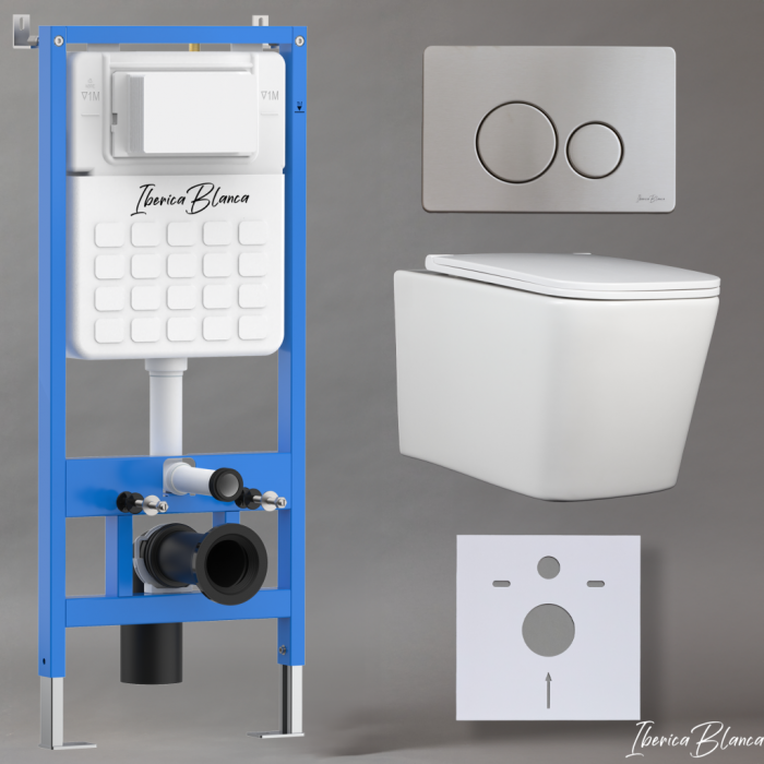 Комплект 3в1 IBERICA BLANCA инсталляция SILENCIO, унитаз TOLEDO ALTO белый, кнопка смыва INOX-O хром матовый (IB001.TLA.234.8132) IBERICA BLANCA IB001.TLA.234.8132 20 лет Испания