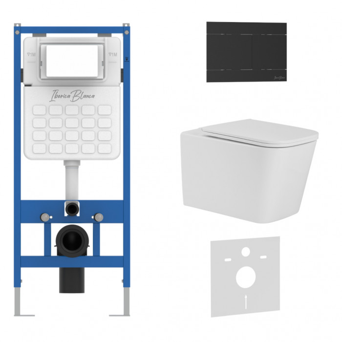 Комплект 3в1 IBERICA BLANCA инсталляция SILENCIO, унитаз TOLEDO ALTO белый, кнопка смыва INOX-R черный матовый (IB001.TLA.234.1504)