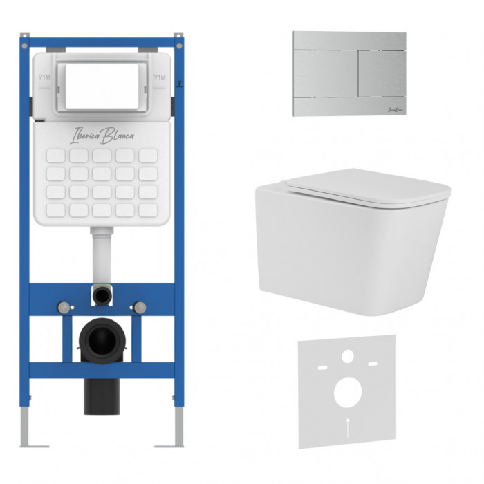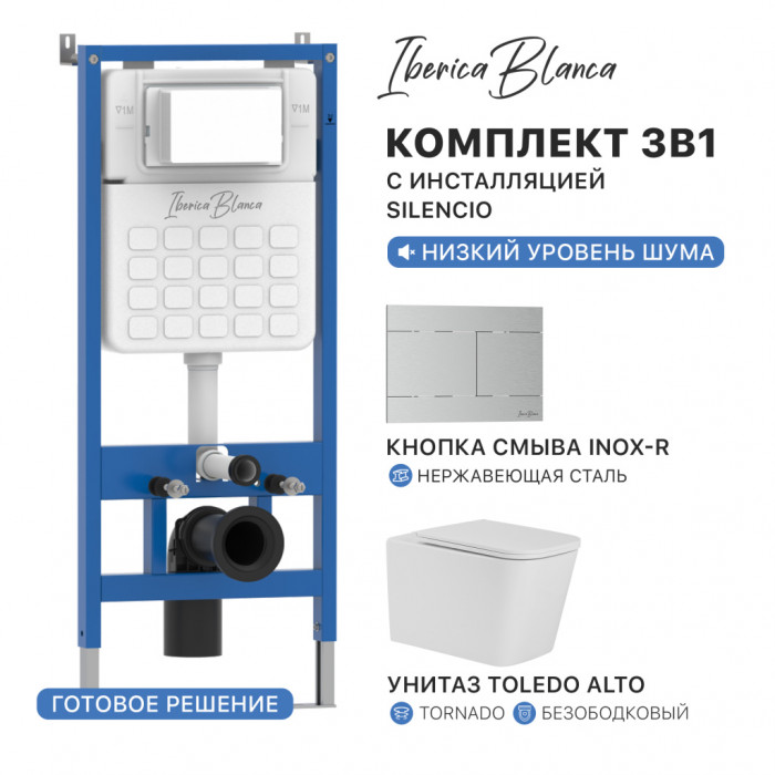 Комплект 3в1 IBERICA BLANCA инсталляция SILENCIO, унитаз TOLEDO ALTO белый, кнопка смыва INOX-R хром матовый (IB001.TLA.234.1501)