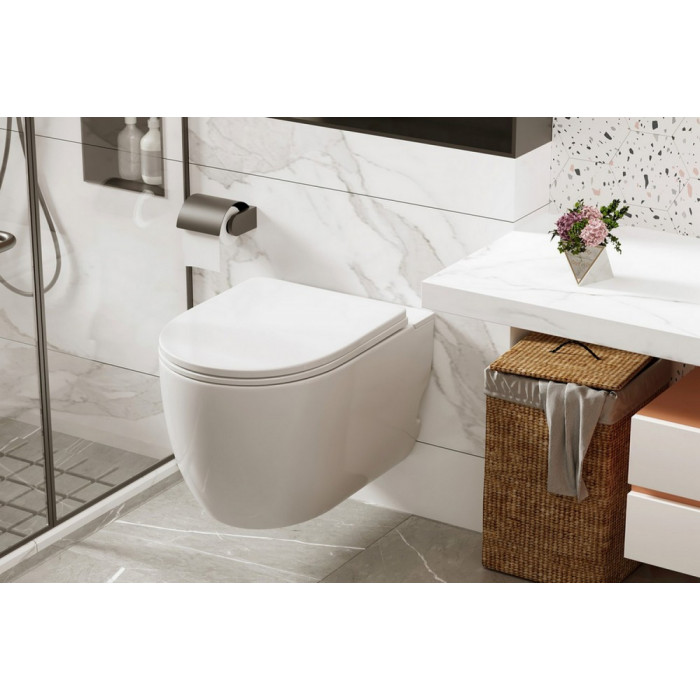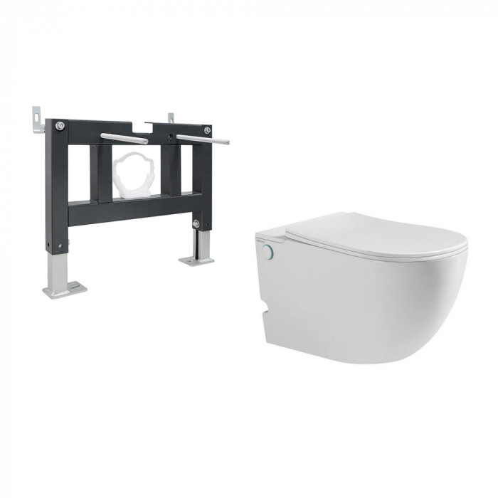 Комплект ABBER подвесной унитаз Bequem AC1105P белый с импульсным смывом с инсталляцией AC0101P