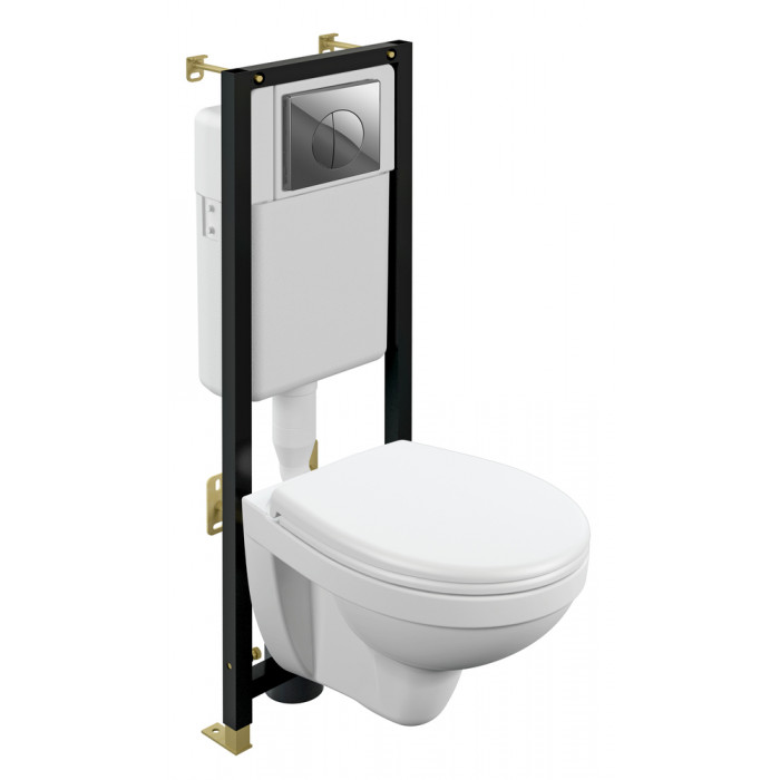 Комплект Cersanit DELFI TPL Инсталляция BLACK кнопка LEON пластик хром глянцевый S-SET-DEL/Black/TPL/Cg-w белый