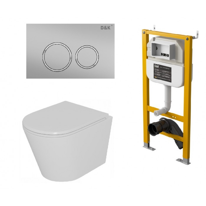 Комплект D&K Унитаз подвесной безободковый (торнадо) DT1026516, Инсталляция DI8050127, Клавиша смыва DB1529002 матовый хром (DS1021613)