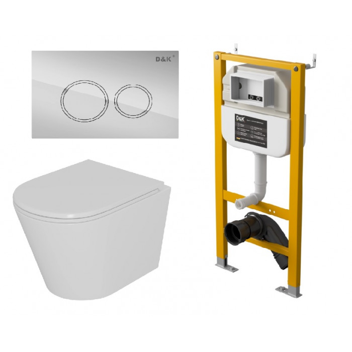 Комплект D&K Унитаз подвесной безободковый (торнадо) DT1026516, Инсталляция DI8050127, Клавиша смыва DB1529001 хром (DS1021614)