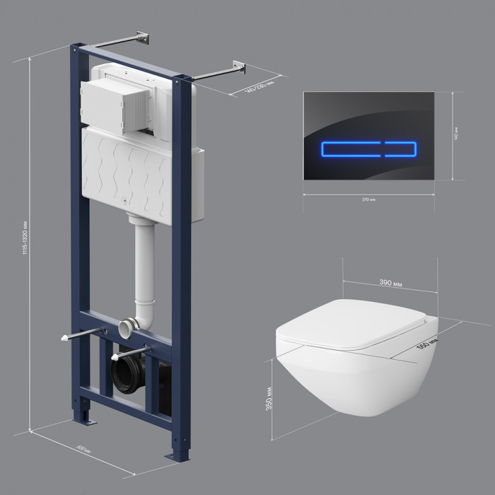 Комплект: Инсталляция с с подвесным унитазом FlashClean с сиденьем микролифт и клавишей AM.PM Inspire V2.0 IS450A38.50A1700 Белый; синий; черный