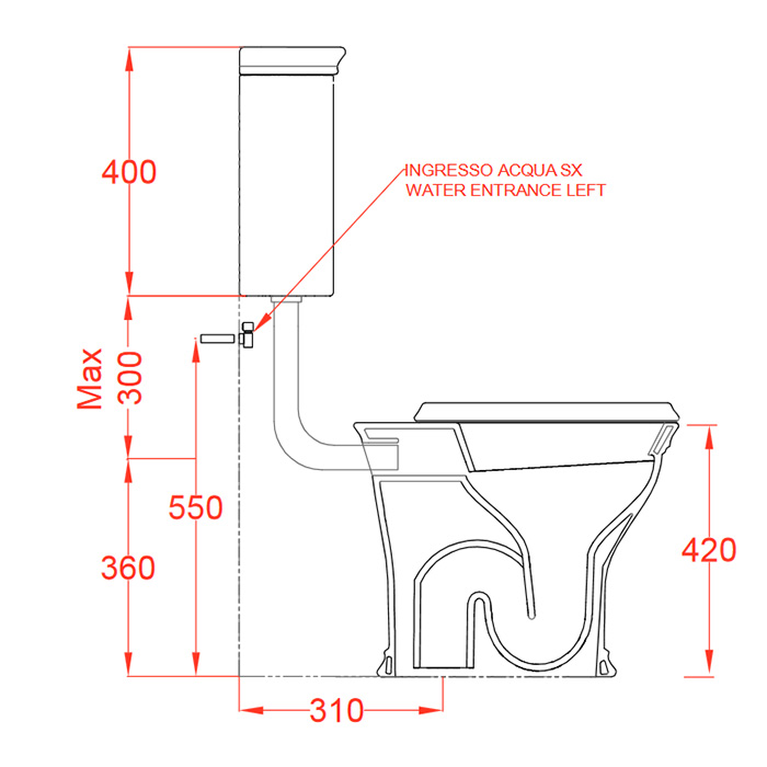 Бачок для унитаза Artceram CIVITAS CIC007 01 00 Белый Artceram CIVITAS Бачок со средней трубой 44х39 см, фронтальная ручка смыва , цвет белый