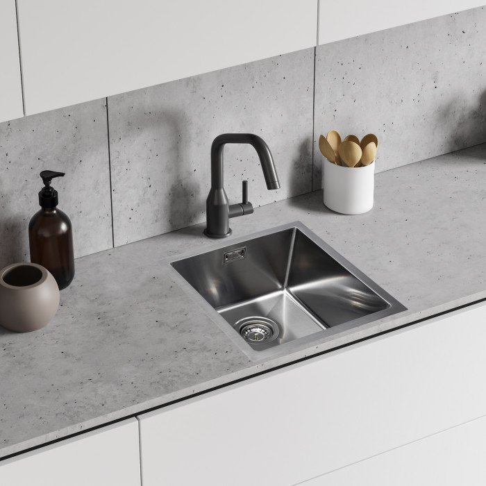 Размер чаши мойки впечатлил, очень удобно, исполнение отличное,цвет алюметаллик подошёл нам идеально, заказала такой же смеситель