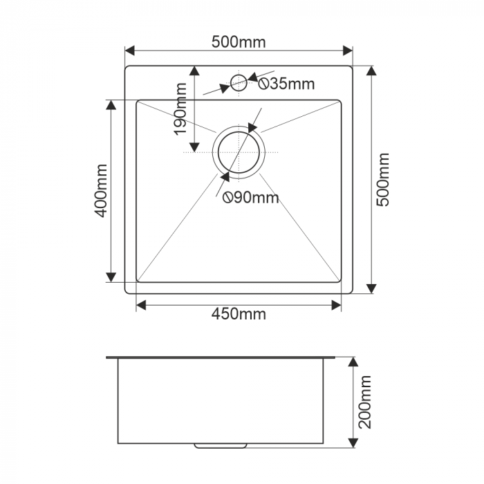 Мойка R5050H MELANA ProfLine 3,0/200 САТИН врезная квадратная MLN-R5050H