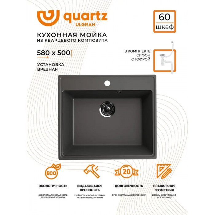 Мойка ULGRAN Quartz асфальт (Forte 580-09)