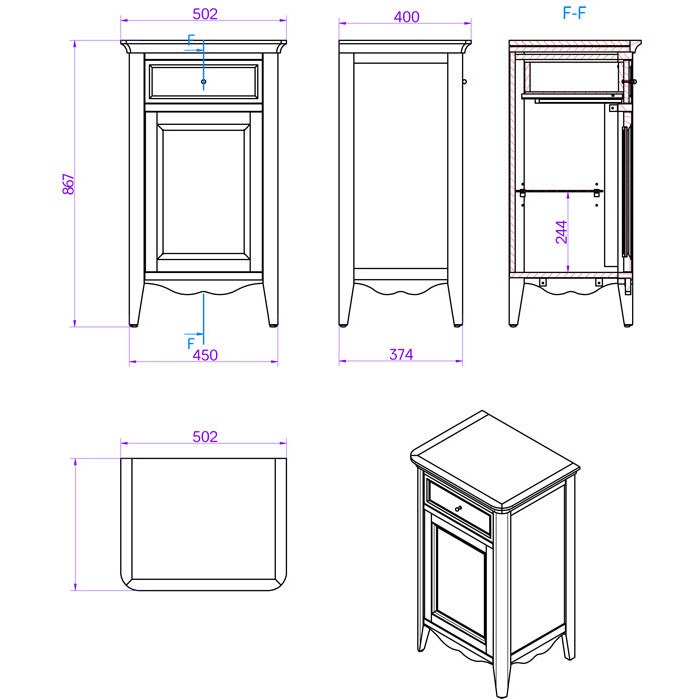 Тумба TW collection VERONICA NUOVO VER2150D-B Белый TW Veronica, Тумба 50.2/45*40/37.4*h86.7см, 1 распашная дверка 1выдвижной ящик, доводчики Blum (петли справа-DX), цвет: bianco, ручки: Riflesso бронза