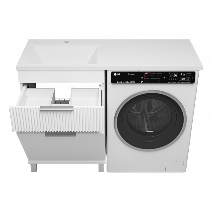 Тумба под раковину Brevita Enfida 60 с бельевой корзиной под стиральную машину (белая) ENF-07060-011Я