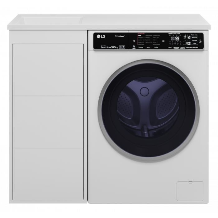 Тумба под раковину Brevita Grafit 40 под стиральную машину (белая) с раковиной Misty Гавана 100 правая УТ000015080 385x460x857 напольный с ящиками МДФ матовое, эмаль Push-to-Open подвесы 2 шт., шуруп с Г-образным крючком 2 шт. мебельная Misty Гавана 100 правая 5213100 4623723132054