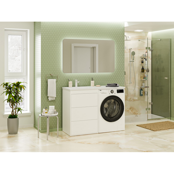 Тумба под раковину Brevita Grafit 60 под стиральную машину (белая) с раковиной Misty Гавана 120 левая УТ000015087 585x460x857 напольный с ящиками МДФ матовое, эмаль Push-to-Open подвесы 2 шт., шуруп с Г-образным крючком 2 шт. мебельная Эстет Даллас 120 левая ФР-00001490 4627179377656