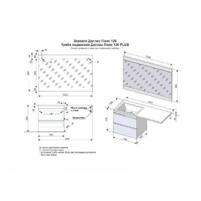 Тумба подвесная Style Line Даллас 150, 2 ящика, Люкс белая, PLUS СС-00002304 Умывальник ESTETUS Даллас 1500*482 левый СС-00002435 МДФ Пленка напольный с ящиками 2 года Россия Особенности производства моделей серии Style Line El Fante: