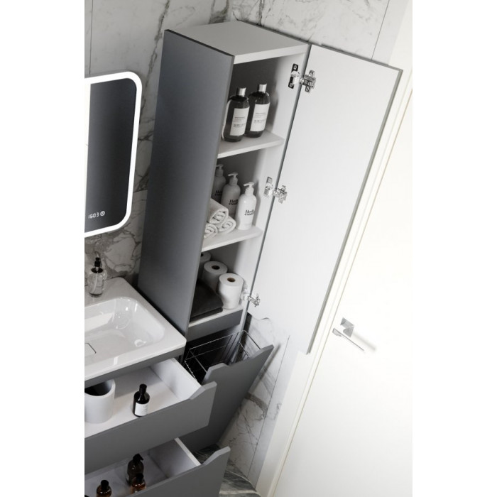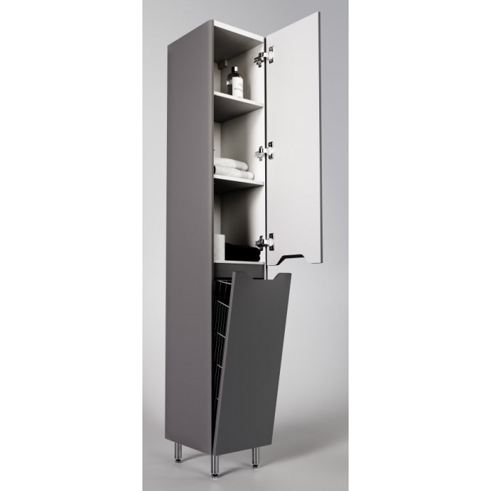 Колонна Style Line Марелла с корзиной, Люкс антискрейтч серый, PLUS СС-00002420 МДФ Пленка подвесной и напольный полочки корзина 2 года Россия Колонна универсальная "Марелла" выполнена в стиле Люкс с антискретч покрытием, что обеспечивает защиту от царапин и повреждений. Она имеет элегантный серый цвет, что делает её идеальным дополнением для современного интерьера ванной комнаты. Оснащенная корзиной, колонна предлагает удобное решение для хранения различных принадлежностей, поддерживая порядок и организованность. Изготовленная из влагостойкого МДФ, она сочетает в себе надежность и практичность.