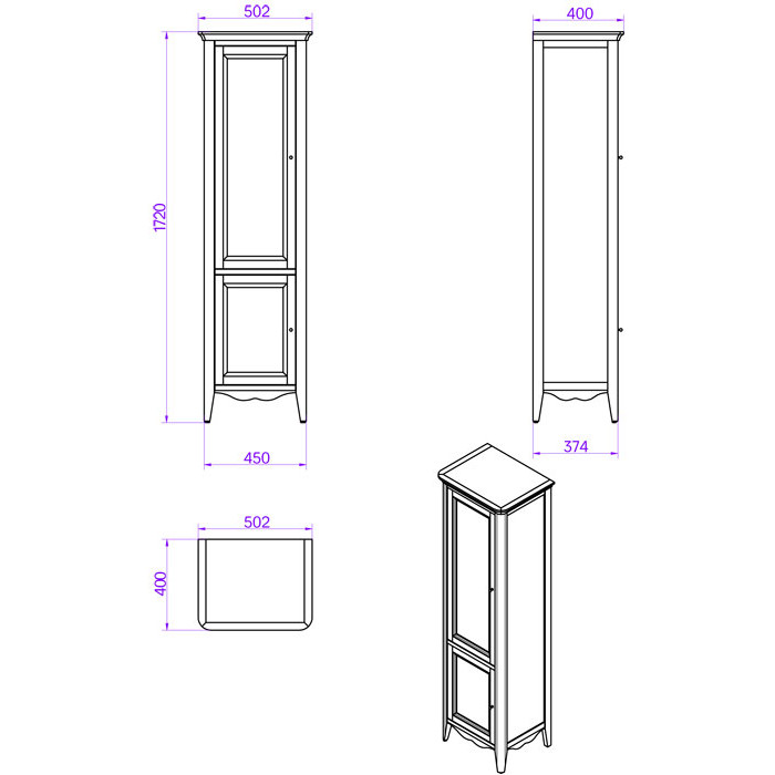 Колонна TW collection VERONICA NUOVO VER2050S-B Белый TW Veronica, Колонна 50.2/45*40/37.4*h172см, 2 распашные дверки, доводчики Blum (петли слева-SX), цвет: bianco, ручки: Riflesso бронза