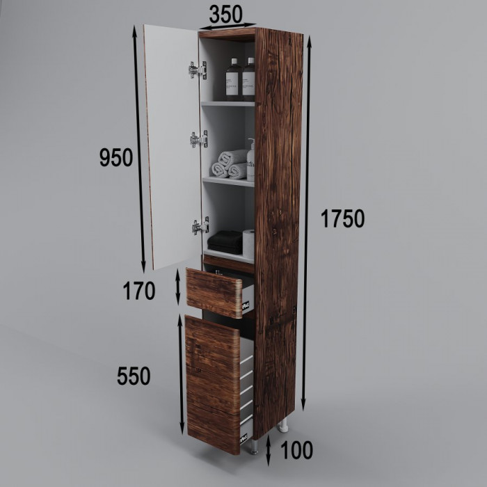 Колонна Style Line Атлантика 35 L с корзиной, Люкс старое дерево, PLUS СС-00002222 МДФ пленка подвесной и напольный с ящиками 2 года Россия Колонна Атлантика - округлые формы угловых поверхностей лишают комплект массивности и делают его элегантным и очень комфортным в эксплуатации. Надежные внутренние крепления и дорогие доводчики приводят в соответствие эффектный внешний вид тумбы и ее достойное внутреннее наполнение, при этом сочетании достоинств - цена остается доступной и адекватной.